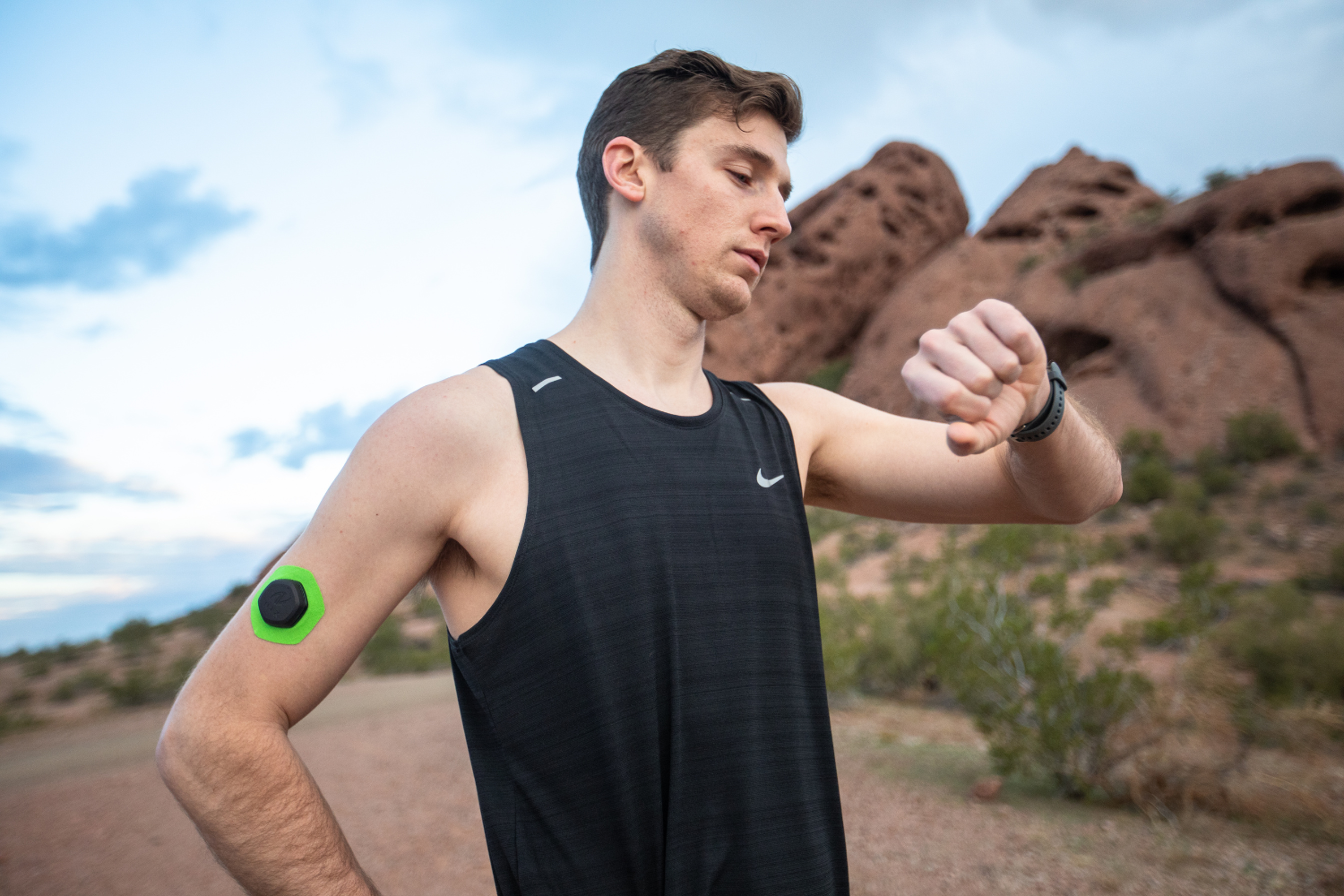 An athlete wearing the Nix Hydration Biosensor patch on their arm during training.